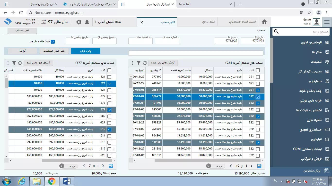 نرم افزار حسابداری به عنوان مرجع تمام مراودات مالی در یک مجموعه دارای بیشترین سطح اهمیت در یک سیستم یکپارچه است. در مجموع، نرم افزار مالی و حسابداری را میتوان در سه حوزه تعریف سرفصل حساب، صدور اسناد حسابداری و گزارشات تقسیمبندی کرد. در یک نگاه جامع و نوین باید تاکید کرد سیستم حسابداری به عنوان محل تجمیع تمام اسناد اتوماتیک صادر شده طی عملیاتهای صورت گرفته در سایر سیستمهای یکپارچه نرمافزاری است و نقش کنترل و جمعبندی این اطلاعات را بر عهده دارد.