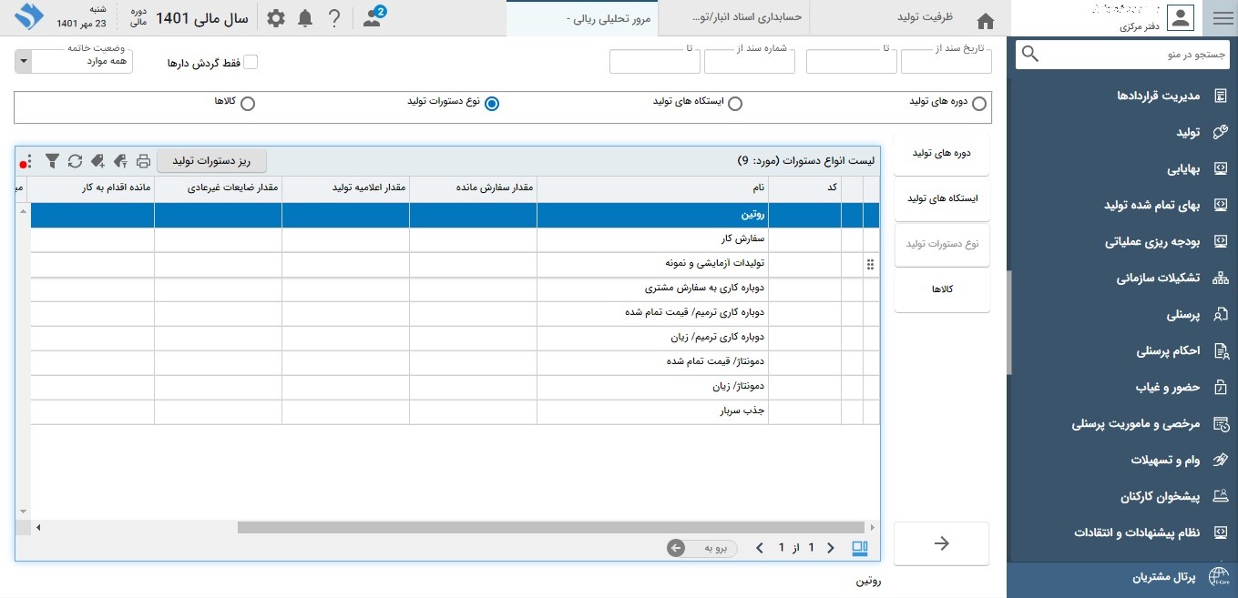 سیستم جریان گردش مواد زمانبندی و واقعیت تولید محصول را رصد، هزینههای انجام شده برای محصول را جمعبندی و تسهیم و روی محصول تولید شده قرار میدهد. در این سیستم میتوان گزارش استاندارد و واقعیت تولید کالا را تهیه و انحراف از پیشبینی را بررسی و کنترل کرد. در سیستم تولید سیاق امکان محاسبه قیمت تمام شده به دو روش سنتی و محاسبه قیمت تمام شده بر مبنای فعالیت یا بهایابی ABC وجود دارد و بسته به صنعت و سیاستهای کارفرما میتوان از هر یک استفاده کرد.